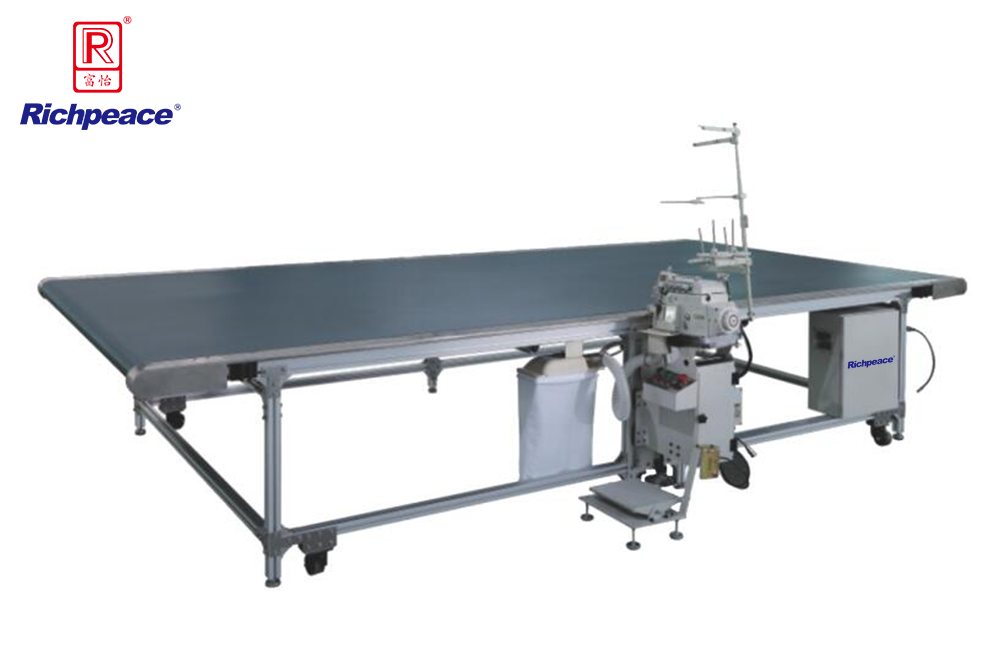 2、該設(shè)備采用飛馬小嘴包縫機(jī),配合自動(dòng)化的輸送臺(tái),讓操作手在固定的工作臺(tái)對(duì)海棉或乳膠內(nèi)套的開(kāi)口處進(jìn)行直線(xiàn)鎖邊工序。