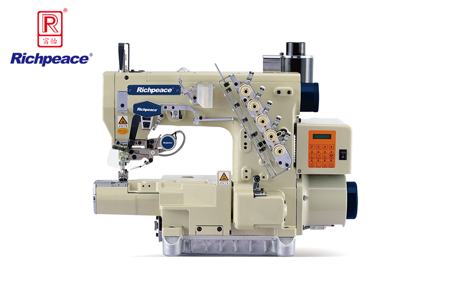 全能型機種,更換導具規格組,加裝輔助配件即可使用原平臺喇叭,產生標準包邊車縫。壓骨、折下擺、包邊三種功能合- -的全能機種。 內藏式定位器,徹底解決定位器搖晃,不易安裝,定位不穩,校正不易等缺點。前置式底線分線盤。底線分線盤外置于機體前側,可輕易清除絞線,容易調整。可微調的底線過線架,可針對底線的收放和松緊,做更精細的調整。適用于-般中厚料平縫、 下擺車縫, 例如:各式內衣褲、運動服接縫及下擺車縫等。