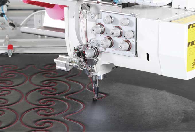 2、雙針機頭可任意角度旋轉跟蹤縫紉線跡,保證雙線縫紉線跡質量。