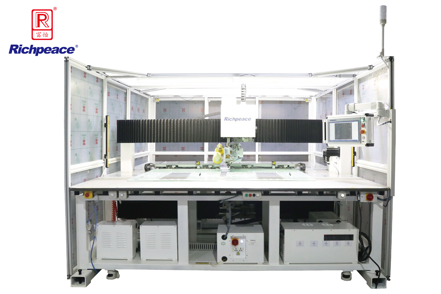 01、富怡自主研發全新Ⅲ型電腦控制系統 ,友好的人機界面,觸控靈活,存儲量大,確保整機的高精度運行。