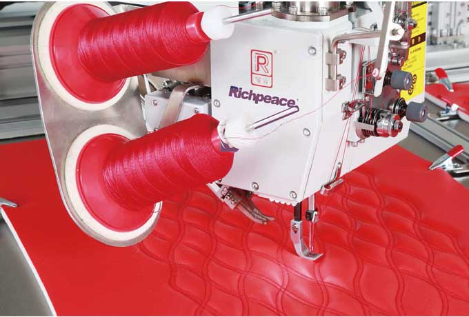 1、雙針機頭可任意角度旋轉跟蹤縫紉線跡,保證雙線縫紉線跡質量。