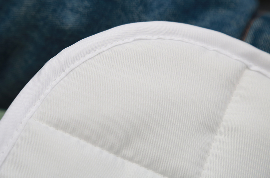 被芯,床笠,毯子等產品的自動包邊及上商標。可配合整體被芯生產線加工,實現自動包邊作業。也可單獨應用于絎縫后成品的全自動包邊作業。
